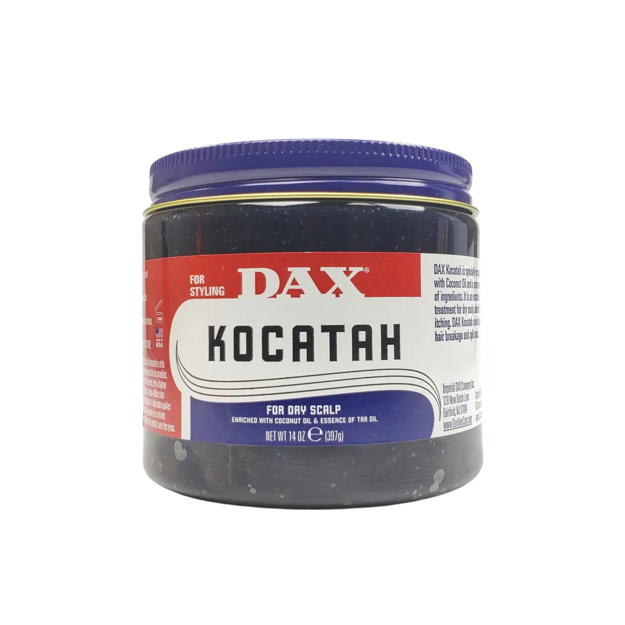 DAX Kocatah with Coconut & Tar Oil 14oz is a premium hair pomade formulated to strengthen, moisturize, and style hair. Enriched with coconut oil and tar oil, this pomade nourishes the scalp, promotes healthier hair, and provides a sleek, manageable finish. It is ideal for shaping, molding, and taming all hair types, leaving hair soft, smooth, and well-groomed.